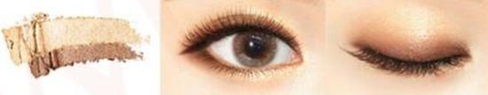 第一款是简单又不会失手的画法,有让眼睛变得深邃的效果,尤其适合单眼皮的女生。首先在眼窝大范围的涂上浅色哑光打底色,然后再于眼尾三份一部分成‘<’状的扫上加深色眼影,最后只要在眼珠中央加上闪令令的提亮眼影就完成啦。