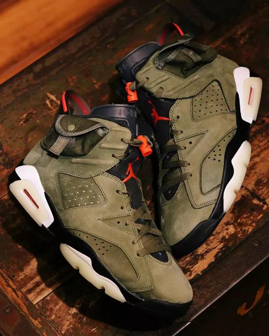 在经历过延期发售之后,Travis Scott x Air Jordan 6 终于要在 10 月迎来发售。鞋面采用橄榄绿色麂皮打造,相比反钩 Air Jordan 1,这双鞋的细节设计更加出色,据悉将有 GS 尺码一同发售,货量似乎不少,但想要原价入手,难度还是有的。