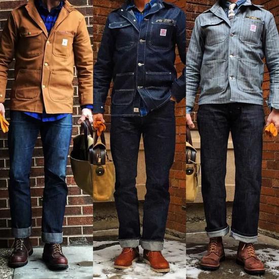 在20世纪初期Chore Coat在美国工农阶层也迅速流行起来,毕竟它耐穿而且带有功能性口袋的特点,很适合工人或者户外体力的工作者穿着。